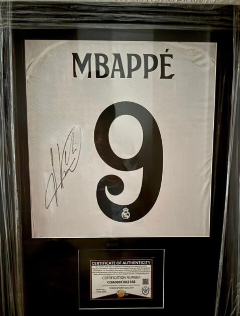 Una camiseta de Kylian Mbappé firmada con certificado de autenticidad.